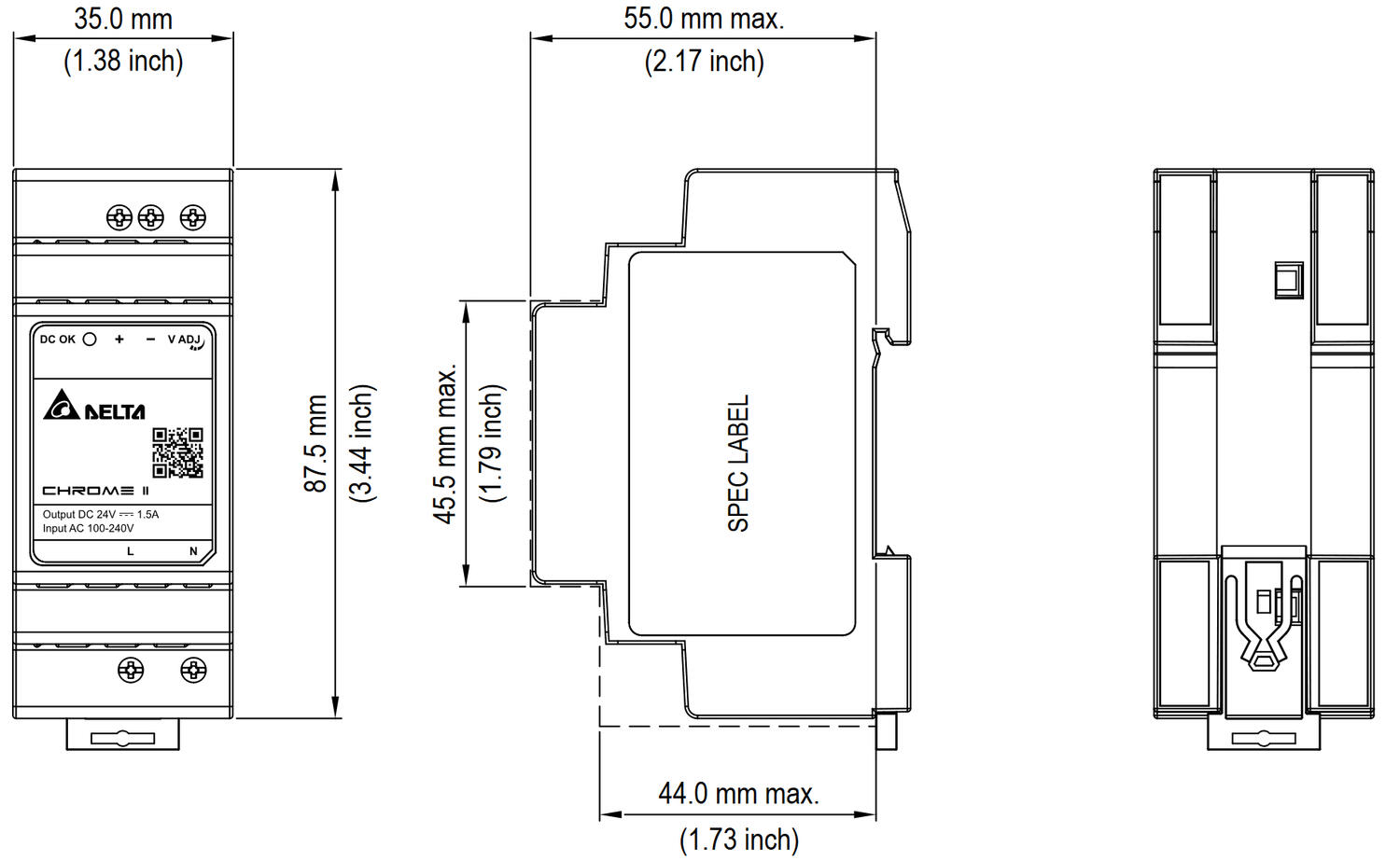 The Delta CHROME II series of single-phase DIN-rail power supplies delivers dependable and efficient DC output for control panels, machine enclosures, building automation systems, and more. Compatible with universal AC inputs, these units are built for industrial-grade reliability, compact installation, and energy efficiency