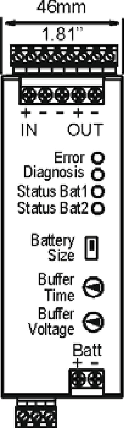 Buffer with 2x12 Ah battery ** | Min. 35.3 min at 10 A. Typ. 44.3 min at 10 A | |