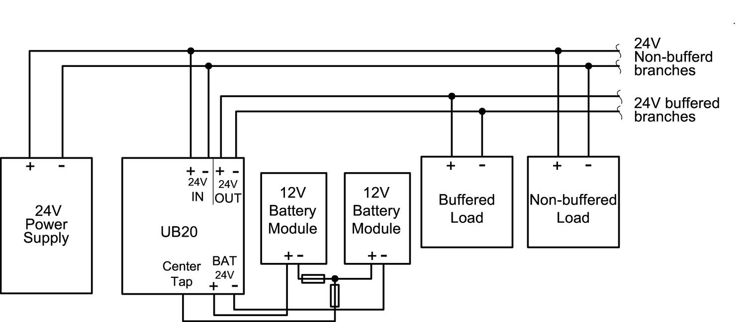 For optimized charging and longevity required that each battery is controlled separately. We recommend connecting the midpoint of the batteries with a center drain connection on the controller to achieve maximum performance. Install a 4 A fuse between the battery and the controller. | |